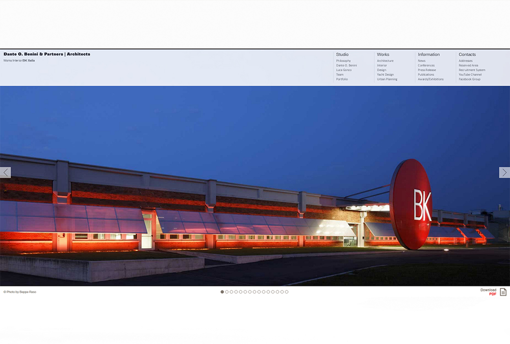 Dante Oscar Benini. Nato a Milano nel 1947, Dante Oscar Benini ha ricevuto la prima formazione da architetto a Venezia, nello studio del Prof. Carlo Scarpa. Si laurea in Brasile, all’Università Federale, con Oscar Niemeyer. Nel 1997 ha fondato la Dante O. Benini & Partners, che opera in moltissimi paese tra cui Italia, USA, Turchia, Francia, Gran Bretagna, Olanda, Cina, Giappone. Suo è il progetto di ristrutturazione della sede produttiva di BK (premio Il Sole 24 ore 2009). Ha disegnato gli arredamenti dello Yacht Seven di cui BK ha realizzato gli imbottiti outdoor. È autore di una linea di divani per BK Group di prossima uscita.